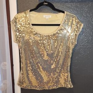 Studio petite JPR Gold Sequin Cap Sleeve Top size PM