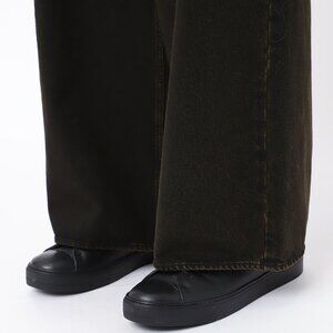 FEATURES: Elegant bleached denim with moderate processing on the seams and switching parts. This is a cool piece with a wide straight silhouette that spreads out towards the hem with a trendy feel.