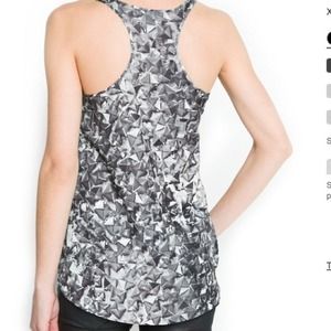 Studs digital print tank top with round neckline, racer back, zip fastening chest pocket and asymmetric hem.