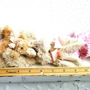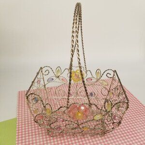 STUFFED MOM & BABY BUNNIES, VINTAGE 12" WITH JEWELED WIRE BASKET, LIKE NEW