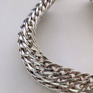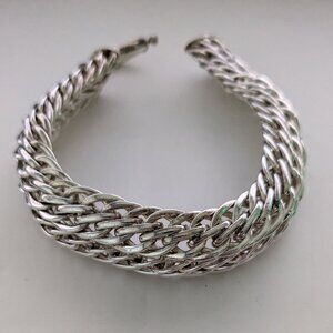 Good condition with light wear and tarnish. Measures .75" wide. Acid tested for silver. Hallmarked on clasp. ITEM#10431