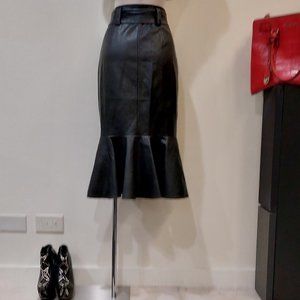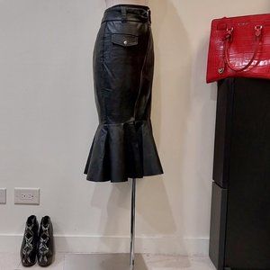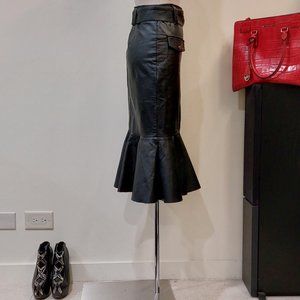 💥STUNNING!💥 Black Leather Asymmetrical Zip Belted Mermaid Skirt
