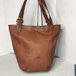 AS WITH ALL VINTAGE BAGS THERE ARE A FEW SPOTS BUT NO RIPS, HOLES, TEARS OR RUBBING . BEAUTIFUL NATRAL TAN LEATHER COLOR . IT IS PERFECT FOR SUMMER. MADE OF THE VINTAGE THICK UNLINED LEATHER, WITH ONE ZIPPERED POCKET INSIDE