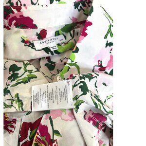 STUNNING EQUIPMENT 100% SILK WHITE FLORAL BUTTON DOWN BLOUSE MEDIUM EUC
