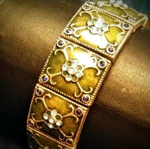 💲STUNNING JEWELED BRACELET OLIVE GREEN WITH AQUA
