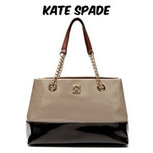 Kate Spade purse. Great condition. Comes with dust bag. The straps are brown, the middle of bag I'd say is a mix between taupe and gray and the bottom is black. Perfect colors for winter!!