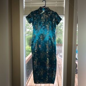 🐉 STUNNING *NEW* TURQUOISE CHINESE CHEONGSHAM QIPAO DRESS 👗 SIZE MED US SZ 2