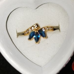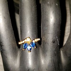 THIS IS SO ELEGANT,FEMININE & DAINTY! VIBRANT COLBOLTBLUE, PIC DOESN'T SHOW THE DEEP SHADES, FOR SMALL STONES,THEY ARE QUITE VIBRANT. DELICATE CUT & DESIGN, SAPPHIRES JUST BLING WITH CLARITY & COLOR. GOLD TONE SETS THE STONES OFF PERFECTLY & THE DAINTY DIAMONDS JUST COMPLIMENT THE SETTING. SMALL AS IF TO WEAR ON PINKY OR A HALF RING ON OTHER FINGERS. YOU WON'T BE DISAPPOINTED,MY PHONE CAMERA DOES MY PHOTOS LITTLE JUSTICE :( PURCHASE TODAY & AS A THANK YOU, I WILL GIFT YOU A BRACELET & PAIR PIERCED EARINGS TO KEEP OR GIVE AS GIFTS!! IF TIME ALLOWS,PLEASE PEEK AT ALL MY LISTINGS, APPRECIATE IT IF YOU CAN :) I WILL BE POSTING MORE & MORE! THANK YOU, STAY SAFE & HAPPY💜