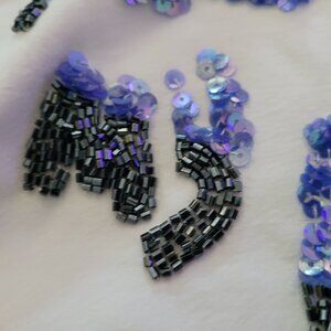 THERE ARE TWO TYPES OF SEQUINS USED, BUGLES BEADS AND FLAT SEQUINS, REALLY BRINGS ATTENTION TO THE WRITTEN DESIGN