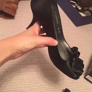 These black Stuart Weitzman are truly works of art. The black bow like detail on the front is perfect and makes them more than your average black heel.