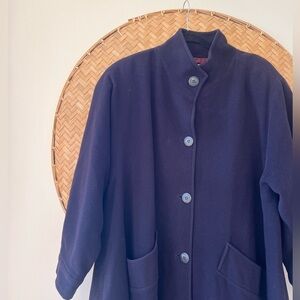 STUNNING VINTAGE NAVY NANCY HELLER WOOL/CASHMERE COAT FULLY LINED W/ POCKETS EUC