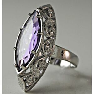 STUNNING VINTAGE STYLE WOMEN High Quality Cubic Zirconia Ring SILVER TONE GOOD CONDITION