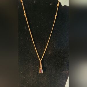 Chain: Gold-tone link chain, approx. 18–20" long