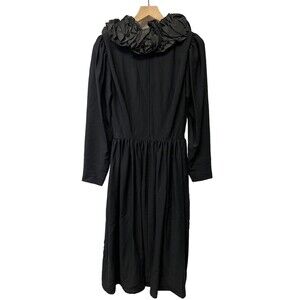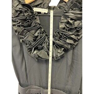 STUNNING Vintage Morton Myles Black Ruffle Neckline Belted Dress Size 12