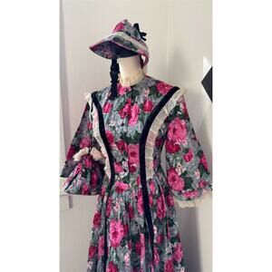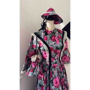 STUNNING handmade Vintage Victorian Floral Dress Sun Hat Set Handbag Womens Sz S