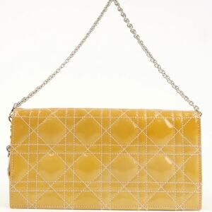 Add a touch of luxury to your wardrobe with this gorgeous Christian Dior Canage Patent Leather Chain Shoulder Bag in a sunny yellow. This iconic bag features Dior's signature Cannage stitching, adding a touch of elegance and sophistication.