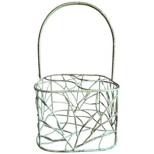 The tall twisted wire handle adds sculptural detail, while the open base makes it best for containers with a flat bottom. This wire basket would make a sweet display for wine or champagne bottles on a buffet table! Mason jars inside this basket holding serving utensils, rolled napkins or even gardening tools would also be delightful.