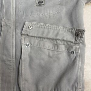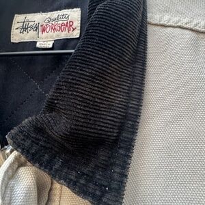 Stussy Washed Canvas Shop Jacket- Mint Condition Style # 115589 Color : Bone Size: Medium Materials : 100% Cotton Lining : 100% Polyester Contrasting corduroy collar Four flap pockets with metal snap closures Adjustable snap cuffs Worn a couple of times