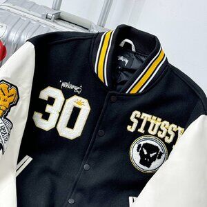 STUSSY badge applique embroidered baseball jacket jacket for men and women