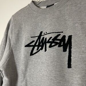 STUSSY crew neck pullover gray logo sweatshirt size US XS
