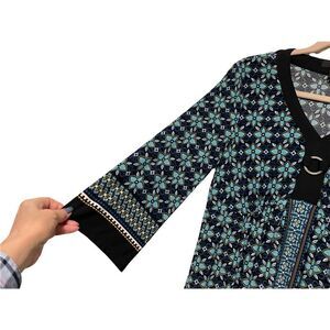 STYLE & CO EMBELLISHED RING DETAIL BELL SLEEVE DRESS FLORAL PRINT S/NWOT