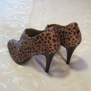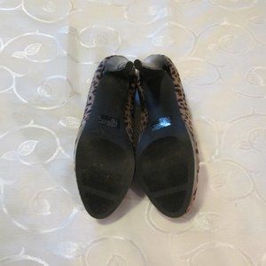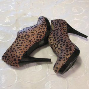 These are so cute and fabulous!! Leopard print with patent platform and heel; Top stretch tab. Heel approx. 4 ¼”. SZ 6.5 fits like 7.