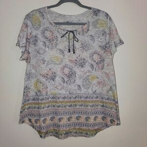 STYLE & CO GRAY PINK PAISLEY BOHEMIAN PRINT SCOOP NECK TEE TOP SIZE XL