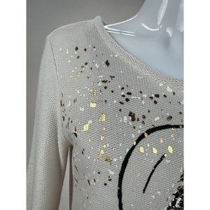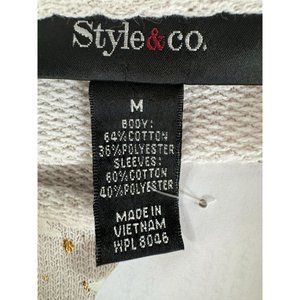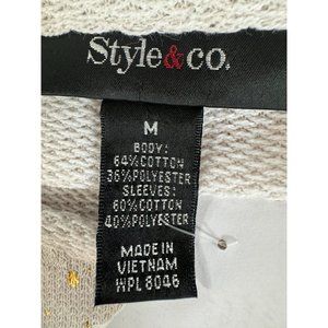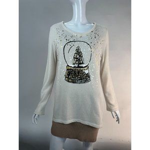 STYLE & CO Holiday Snow Globe Christmas Top Sz M Beige Cotton Blend Blemish