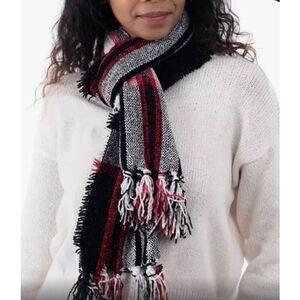 Great Christmas gift! This is a Style & Co. Soft Chenille Plaid Scarf with Fringe from Macy's. The colors are black, red and gray.  It's 64" long and 13" wide and made of 100% polyester. It's machine washable and tumble to dry. A timeless plaid print covers every inch of this soft chenille scarf, a cozy pick designed with fringe at each end. So cozy and NWT!