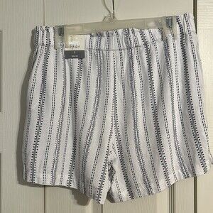 Size small Style & Co white and blue stripe pull-on shorts. These paperbag waist style shorts have a high waist with pockets in front. New with tags.