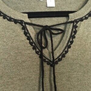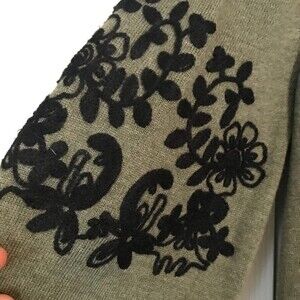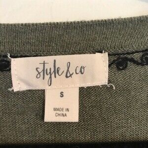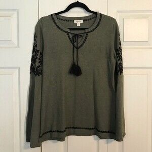 Size small green embroidered Style & Co embroidered sweater top. Tassel tie around the v-neck split neck neckline. Super soft and cozy, this has bell type sleeves.