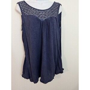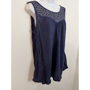 The Style & Co. Tank Top in navy blue is a sleeveless tunic with eyelet/crochet insert and fringe trim, perfect for a boho look. Made of lightweight and breathable knit cotton fabric, this pullover top features a round neck, wide straps, and a relaxed fit. Ideal for casual, workwear, or travel occasions in the summer, fall, or spring seasons, this stylish tank top with embroidery eyelet accents adds a touch of bohemian flair to any outfit. Perfect for a beach day, city outing, or a classic everyday look, this top from Style & Co. is a versatile and trendy addition to any woman's wardrobe. Top is in great preowned condition and very lightly used. Measurements in pictures. I appreciate your business and strive for a five star rating. Please feel free to message with questions. 19/8114.