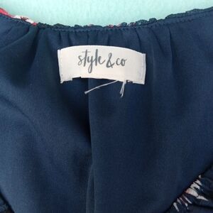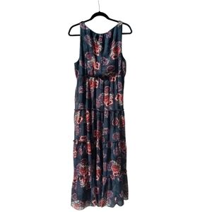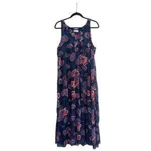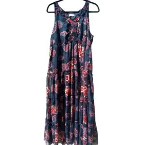 STYLE & CO Tiered Maxi Chiffon Ruffle Dress Women's Size 1X Sleeveless Navy Blue