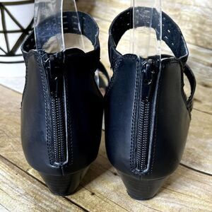 STYLE & CO WOMEN'S SIZE 7.5M ROUND TOE BLACK ZIG ZAGGING CUTOUT STRAPS. ZIPS AT BACK FOR EASY ON AND OFF. SHOWS SOME SIGNS OF WEAR ON FRONT TOE. PLEASE SEE ALL PICS FOR DETAILS. OFFERS WELCOME.