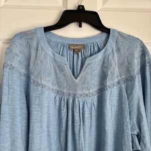 STYLE & CO. WOMENS TOP EMBROIDERED BLUE LONG SLEVEE PULLON COTTON SIZE 1X, 2X,3X