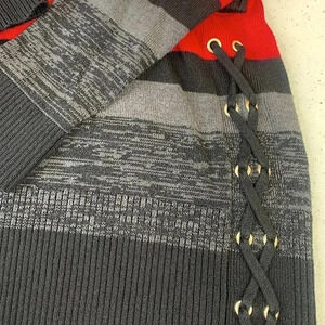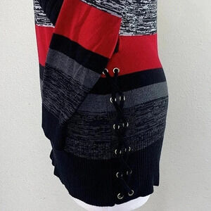 STYLE & CO Wrapped Knit Tunic Sweater Women Size M Striped Pullover Laced Up