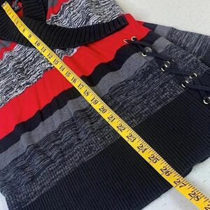 STYLE & CO Women Stripe Wrapped Shawl Collar Laced Up Tunic Knit Sweater