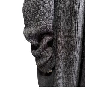 Style & Co dolman batwing sleeved mixed knit cardigan. Body of the sweater is ribbed, sleeves are waffle knit. Soft dark gray knit is mid-weight and drapes nicely, not clingy. Versatile closet staple for layering. Extra long sleeves can be cuffed. Excellent condition.