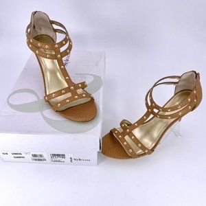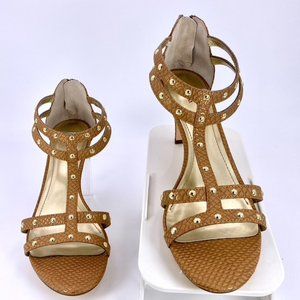 STYLE & COMPANY 9.5M LEVINE 3 INCH METALLIC CAMEL BROWN STUDDED STILETTOS
