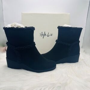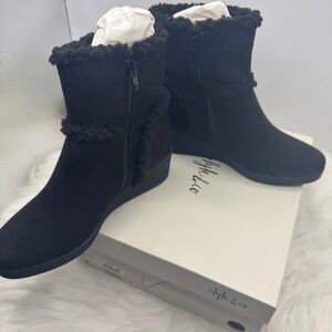 STYLE & COMPANY Womens Black Jordanyy Round Toe Wedge Zip-Up Booties sz 7