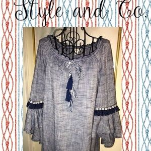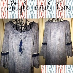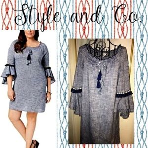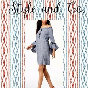STYLE & CO.'S "MELLY" DRESS,BLUE W/RUFFLES~SMALL