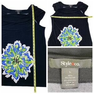 Style & Co Black Floral Graphic Tunic Blouse Women's Size Large