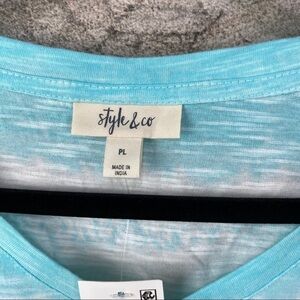 Style & Co Tide Dye Short Sleeves Tee Aqua Size LP new with tags, v neck, super soft, aqua and white. Check all pictures for details.