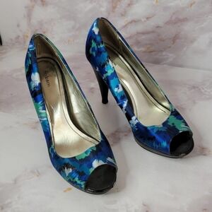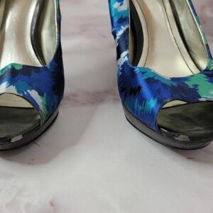 does have wear inside but besides that great used condition. please see photos. Heel Height 3 1/2 Open toe Round Toe Slip On