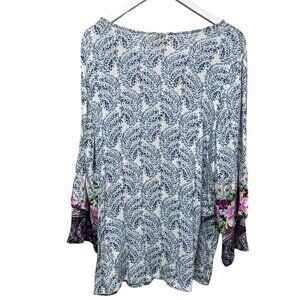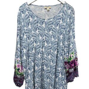 STYLE & Co. Womens Top Plus Size 1X Blue Paisley Ruffle Sleeve Boho Tunic Tee