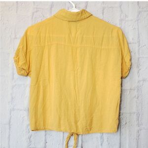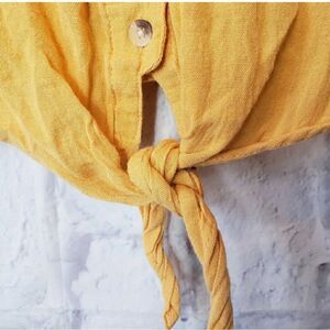 STYLE ENVY Linen-Blend Knotted Front Cropped Button Down Shirt Small