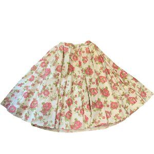 Effortlessly feminine and luxuriously soft, this STYLE PARIS midi skirt by Susan Sutherland is crafted in France from 100% pure silk. Featuring a romantic pink and green floral pattern on an ivory base, it’s tailored with a high waist and gentle pleating for graceful movement. The fully lined design and quality craftsmanship make it perfect for special occasions, springtime events, or elegant everyday wear.