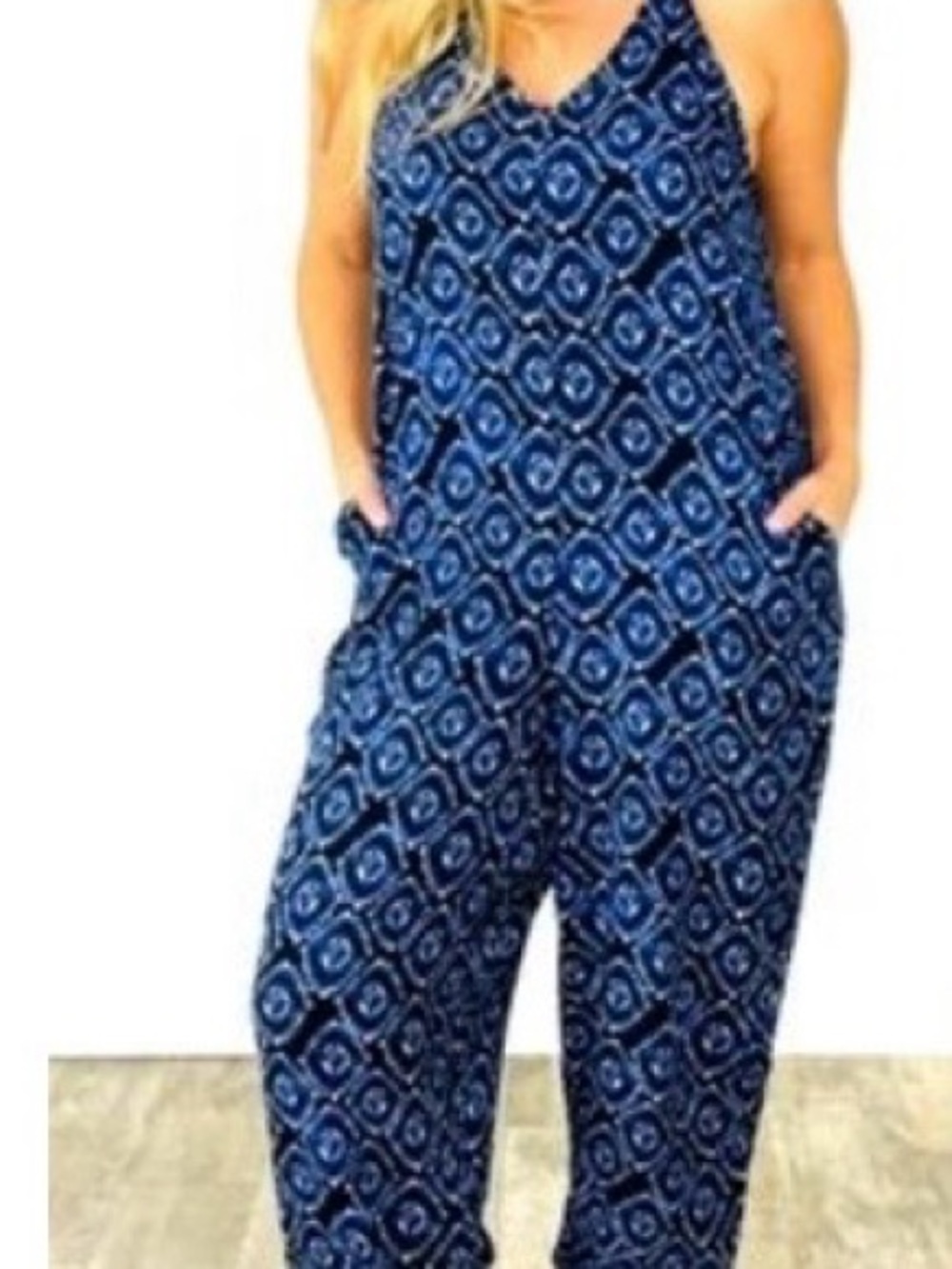 NWT STYLE RACK LARGE BAGGY ROMPER IS MADE WITH GORGEOUS NAVY BLUE W/ LIGHTER BLUE.