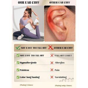 Hypoallergenic Ear Cuff Earrings:Look at our 14K gold plated ear cuffs and clip on earrings!These women's non pierced clip-on earrings are vacuum-plated for long-lasting shine,these brass-based cuffs resist fading and are perfect for sensitive ears.The lightweight design and smooth surface support all-day comfort.Sparkling cubic zirconia inlays add a touch of glamour,whether you’re dressing up or keeping it casual
