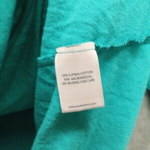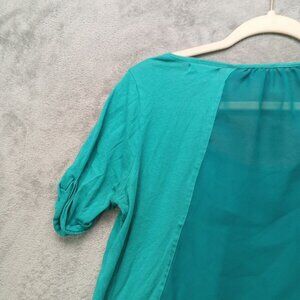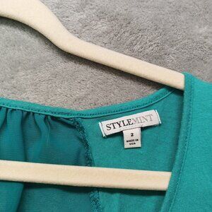 STYLEMINT Top Size 2 Women Short Sleeve Casual Solid Turquoise Knit Sheer Back